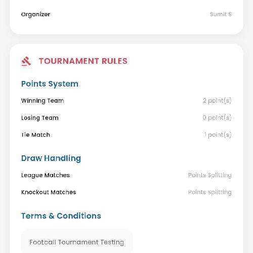 *The app is free to download & allows players, supporters stake holders, sponsors & other users to track multiple sports leagues & tournaments.